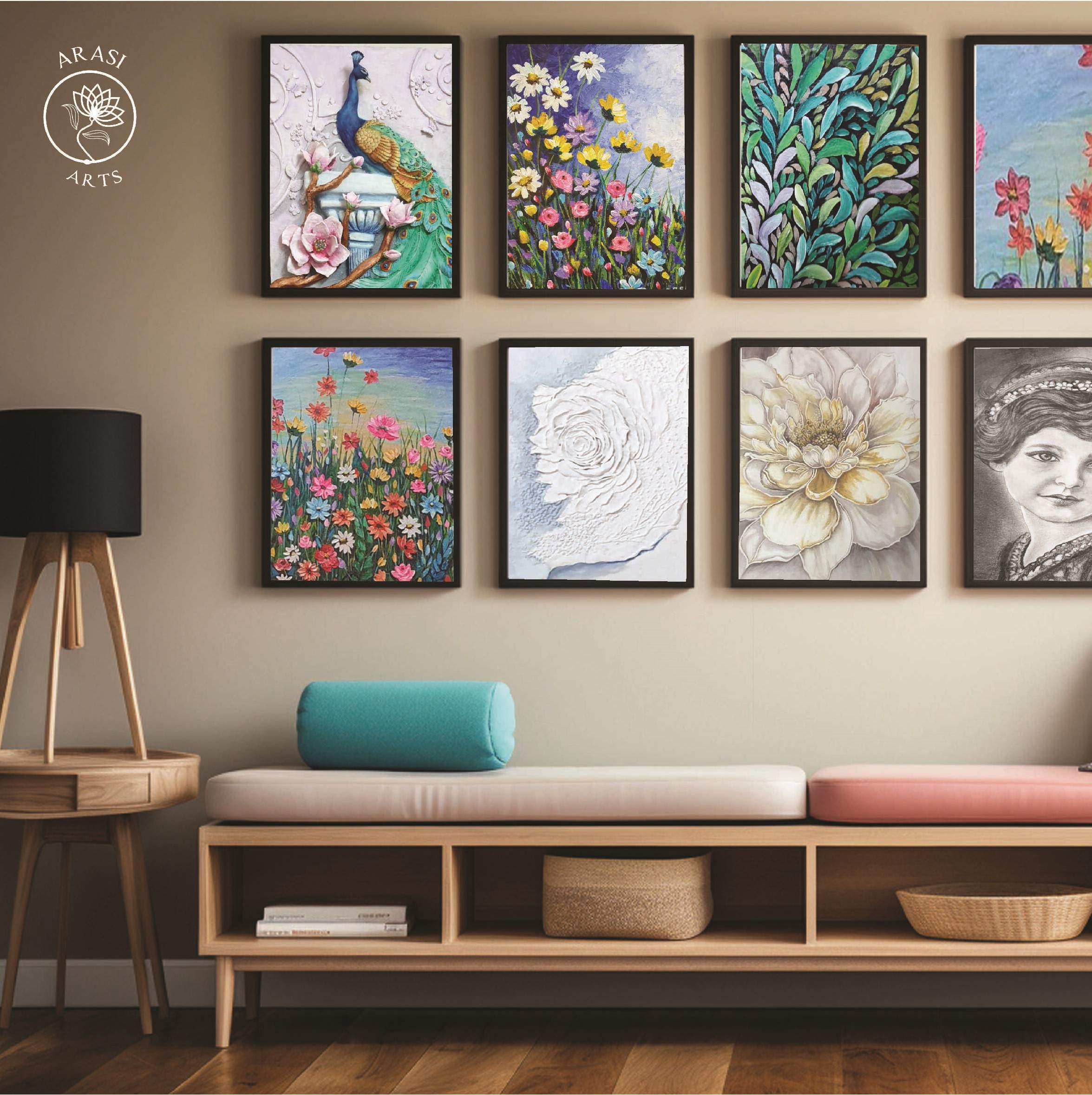 Elavarasi is a self-taught artist whose love for colors, textures, and forms began at an early age. Over the years, she has honed her skills in various styles and mediums, from watercolors and acrylics to mixed media and digital art. Her journey as an artist has been one of continuous exploration and growth, and she uses Arasi Arts as a space to document this journey.